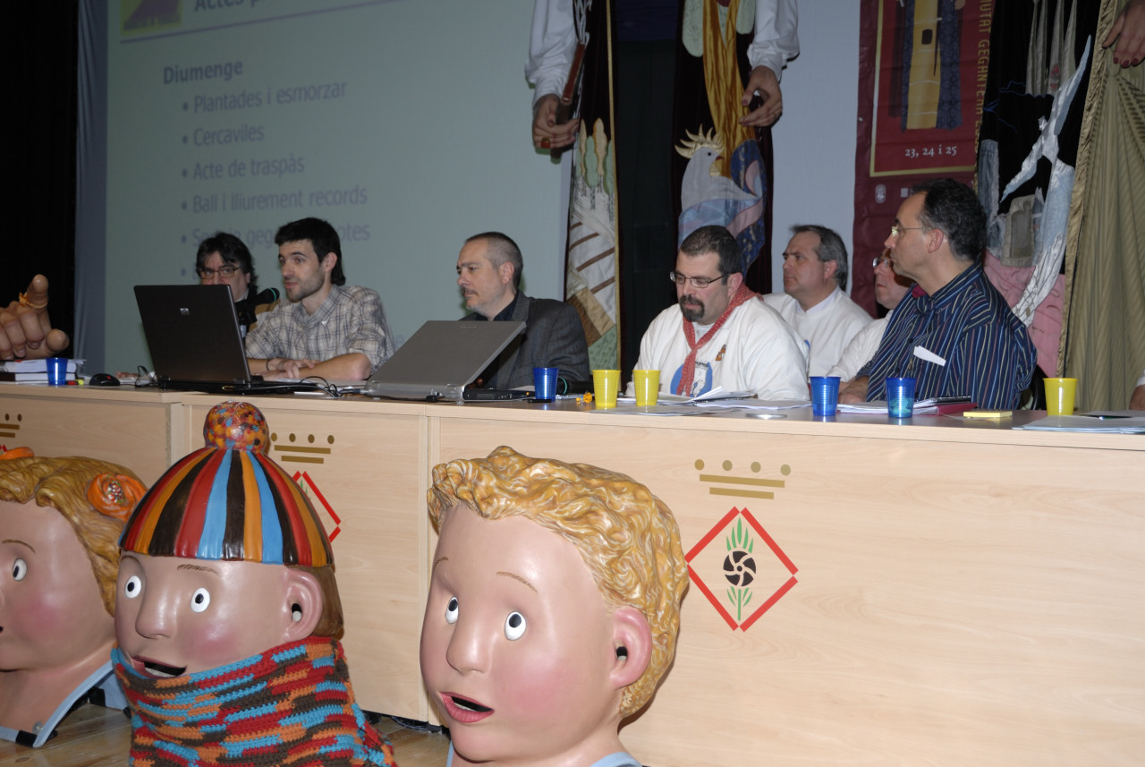 07-02-2009 – Assemblea de l’Agrupació de Colles Geganteres de Catalunya a Sant Vicens dels Horts. – El·lecció de Ciutat Gegantera 2010: Manlleu = 63 vots, Terrassa = 45 vots.